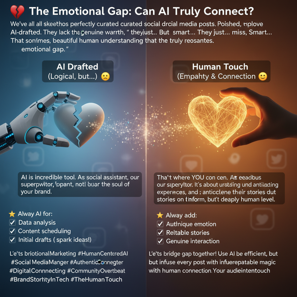 The truth? AI excels at scale and speed, but the heart of social media—the truly “social” part—remains stubbornly, gloriously human.