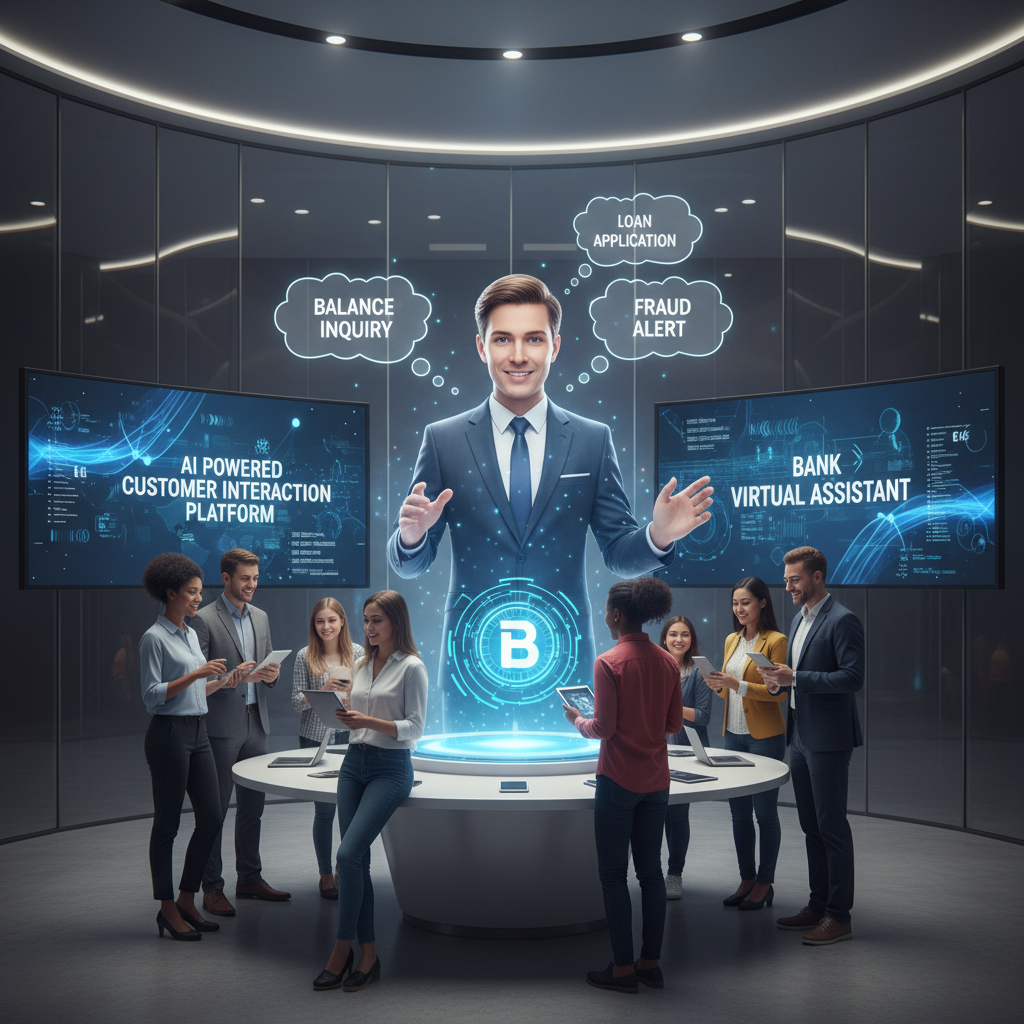 Photo: AI-powered virtual assistant in a financial services environment, symbolizing high-speed customer query resolution.