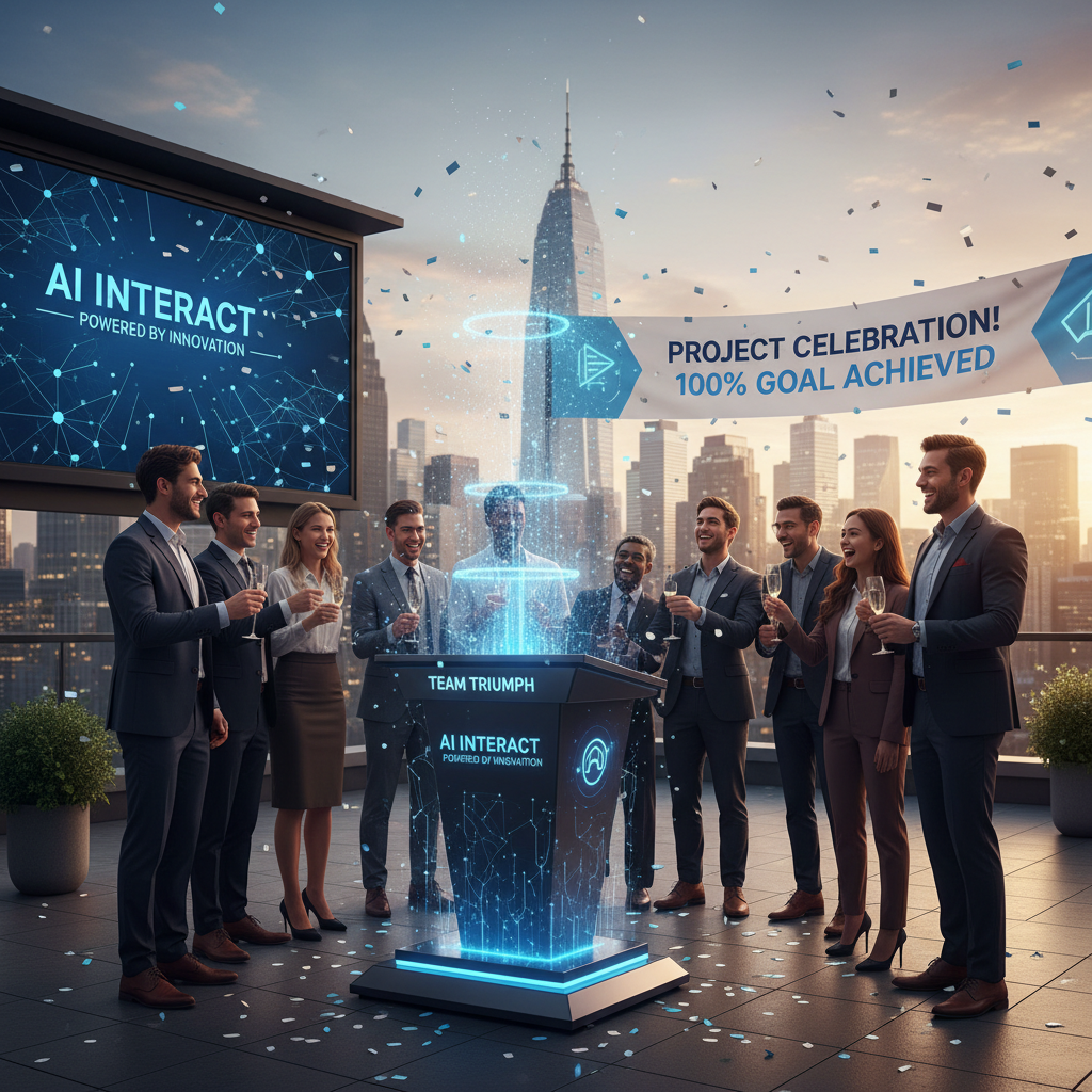 Photo: Team celebrating a successful AI-powered platform rollout, blending human and AI strengths.
