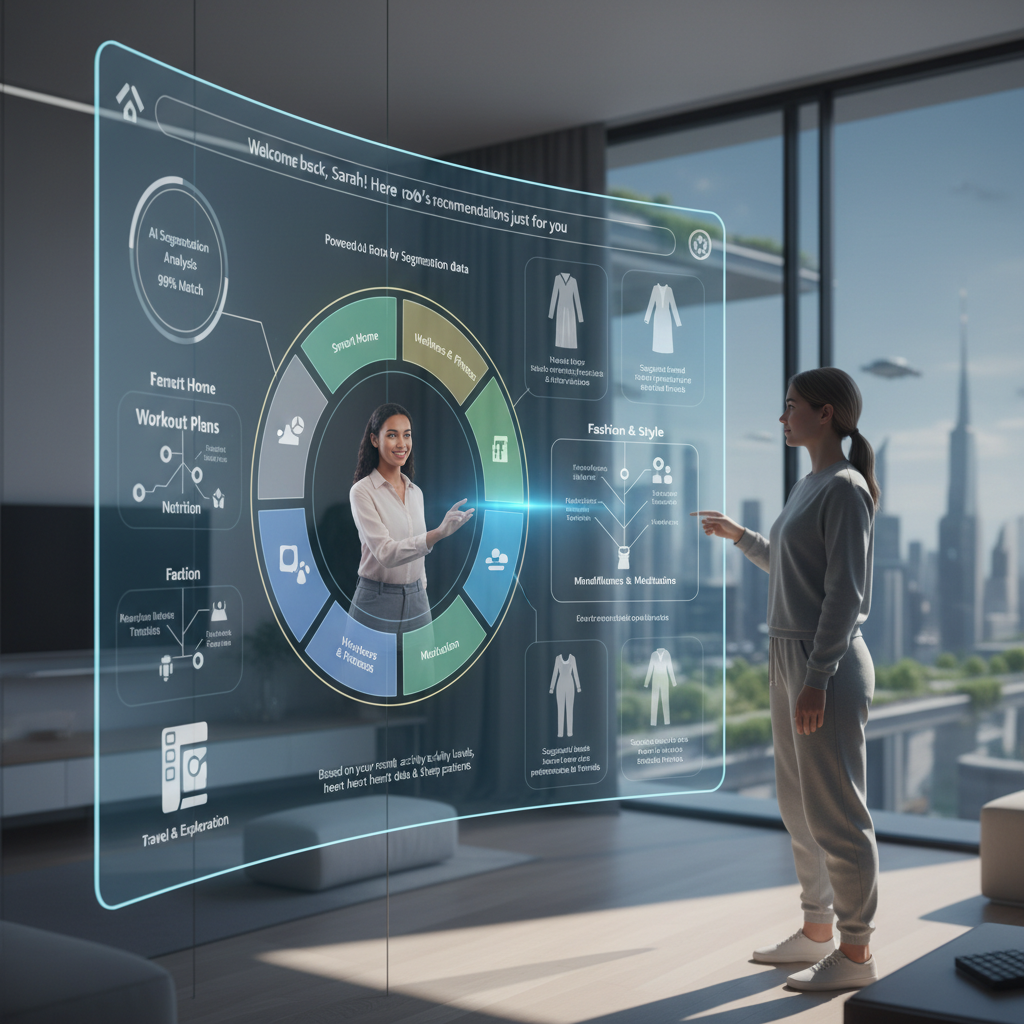 Alt text: Futuristic interface showing dynamic, AI-personalized customer segmentation in action