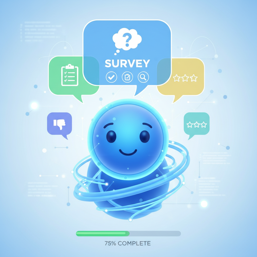 Alt text: AI-powered virtual assistant conducting a dynamic, conversational survey—highlighting NLP, logic branching, and sentiment analysis.