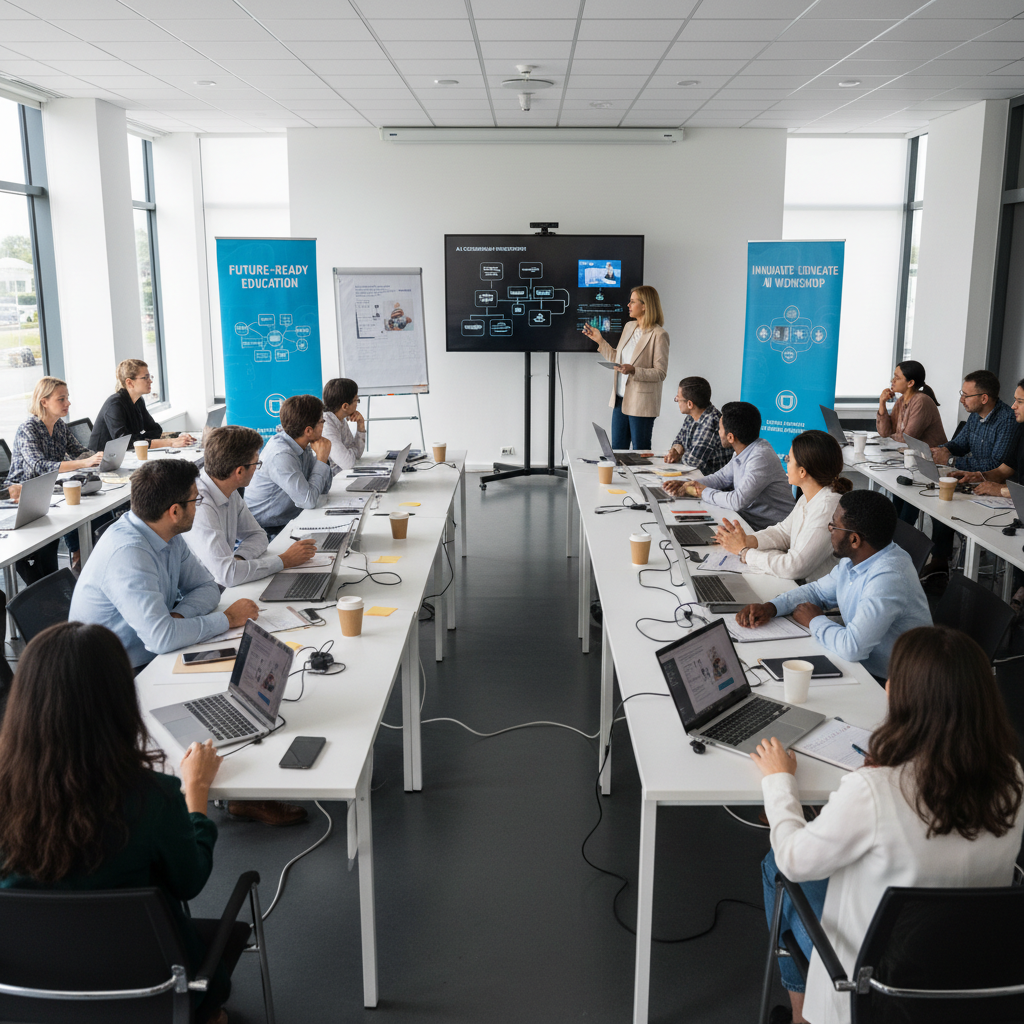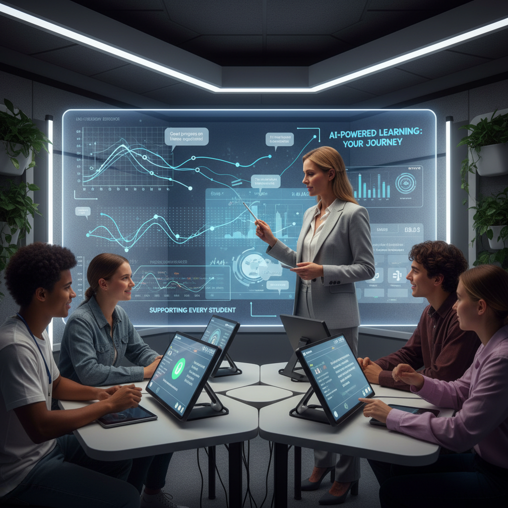 Alt text: Educator collaborating with an AI assistant to provide real-time student support in education.