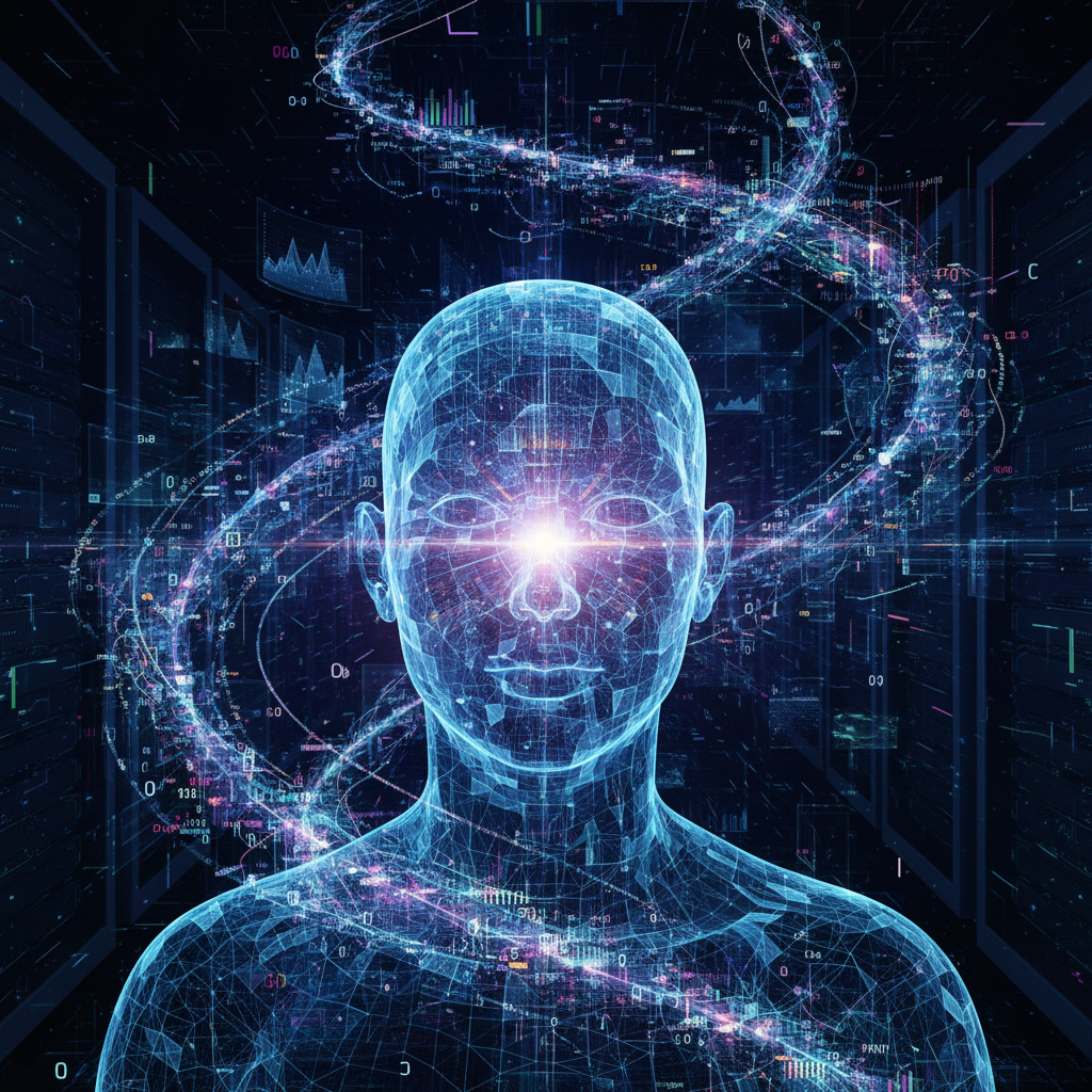 Alt text: Inside look at AI concierge technology with data streams and advanced algorithms, highlighting virtual assistant capabilities