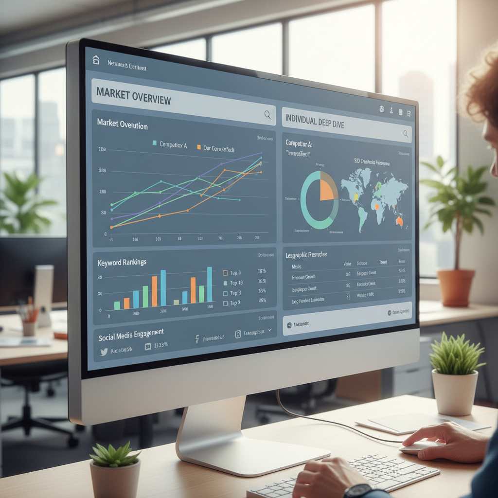 - Automated competitor benchmarking that adapts as rivals shift focus