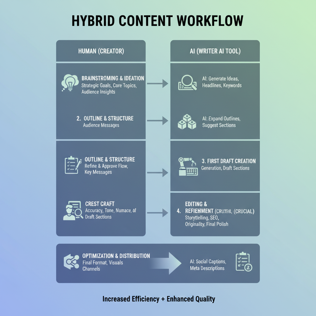 - AI drafts, humans craft: The best results come from leveraging AI for ideation and speed, then letting human editors shape voice and narrative.