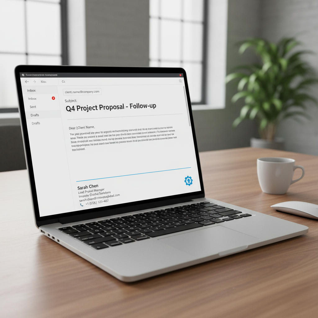 - Professional closing and signature: Include contact info, relevant links, and a subtle branding element.