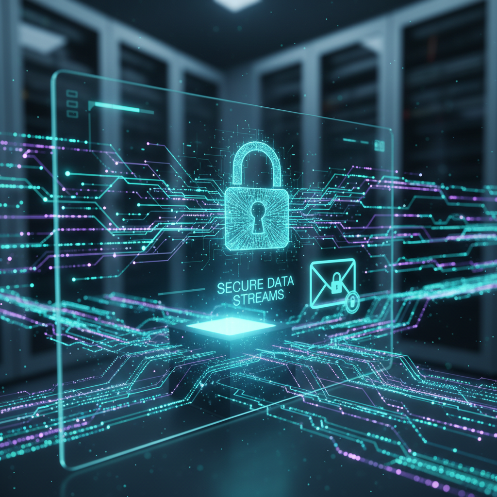 Alt text: Locked email icon overlaid with secure data streams, representing encryption in email-based reporting tools.