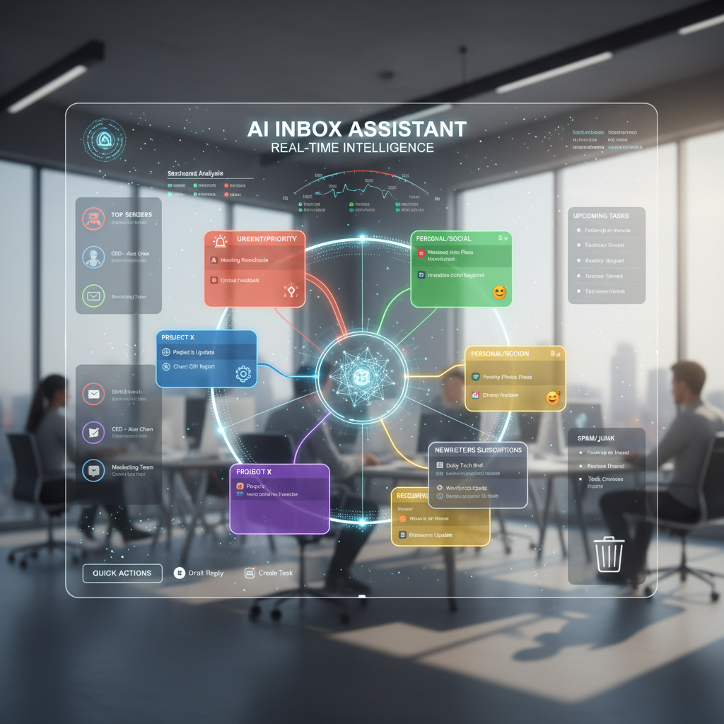 AI-powered sorting of emails based on sender, urgency, and content, reducing manual review. For example, urgent client inquiries are surfaced automatically while newsletters are archived.