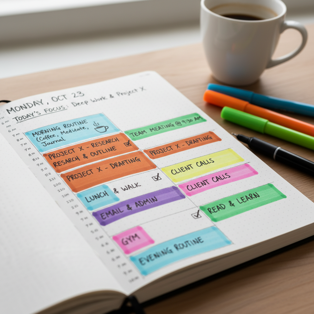 - Review and adjust: Reflect weekly, shifting blocks as priorities change.