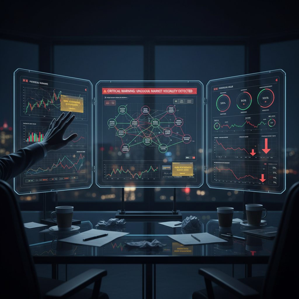Alt: Portfolio manager ignores warning signals on AI dashboard during portfolio review.
