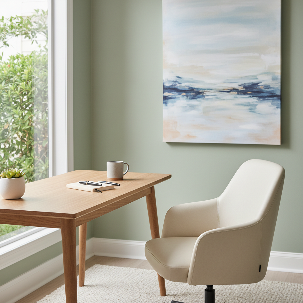 Minimalist, peaceful workspace with no screens—championing the radical idea of fewer meetings and mindful work.