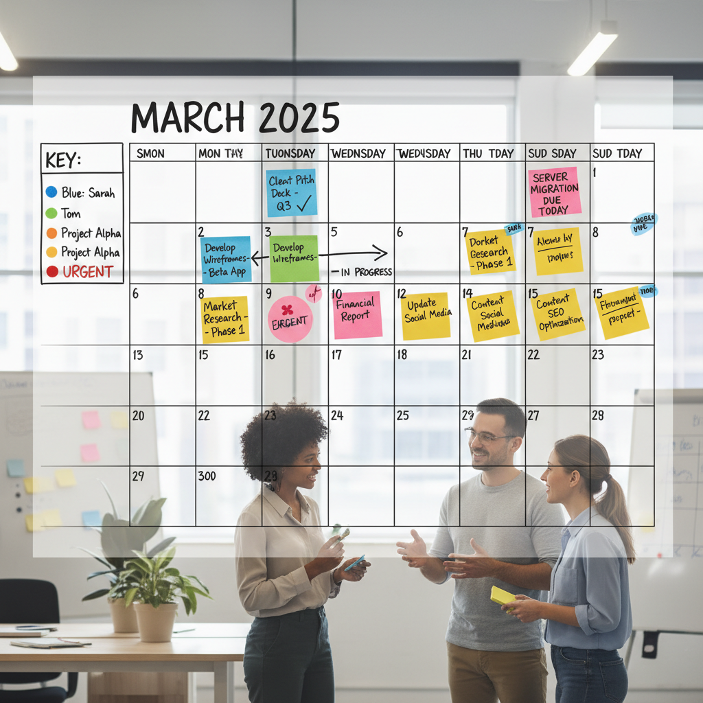 - The Wall Calendar Ritual: Every Monday, teams gather around a physical calendar and mark essential meetings. Visual, collaborative, and impossible to ignore.