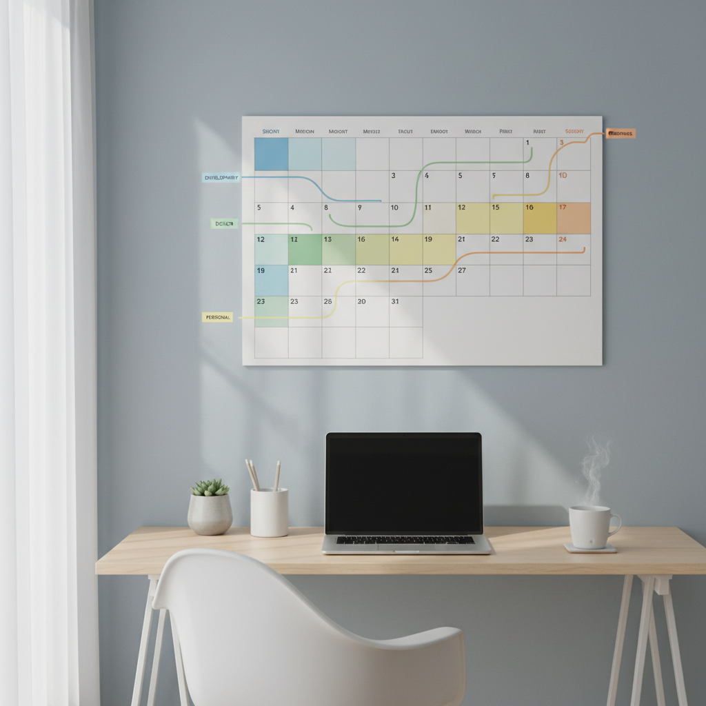 - Tracking creative sprints: Use color-coded blocks to carve out focus time for painting, writing, or composing.