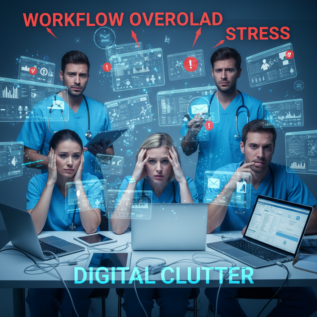 With each new platform or digital assistant comes another stream of pop-ups, reminders, and “urgent” flags. Cognitive overload is now a recognized occupational hazard in modern healthcare. According to BMC Medicine, 2024, digital clutter increases error rates and slows decision-making. Teams report feeling “hunted” by their own tools—always one notification away from overwhelm.